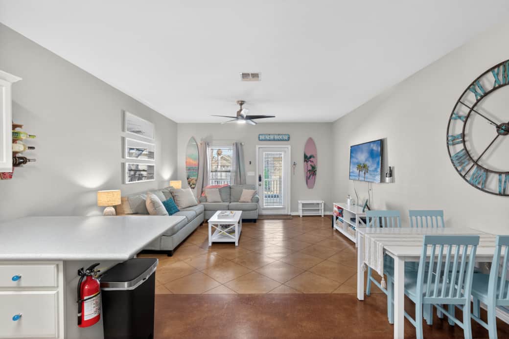 This property is on a ground level floor over looking the pool. You will enter into an open floor plan with feels of big waves and surfing excitement. It is fully furnished and provides 1 king bedroom and a queen pullout bed from the couch. It has a fenced in patio to enjoy and hangout.